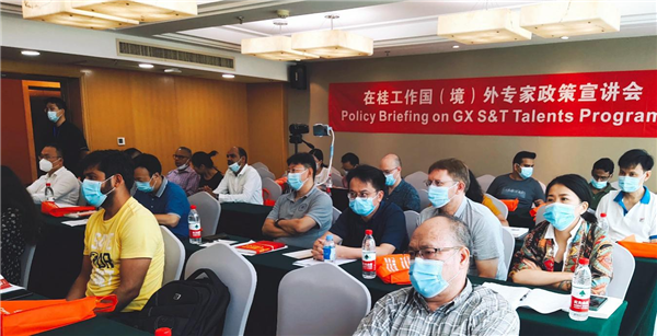 央廣網南寧6月28日消息(記者羅蘭)6月26日,廣西壯族自治區科學技術廳(以下簡稱“廣西科技廳”)在南寧召開在桂工作國(境)外專家政策宣講會,來自美國、澳大利亞、新加坡,中國香港、中國臺灣等14個國家和地區的在桂國(境)外專家和用人單位業務負責人50余人參加會議。