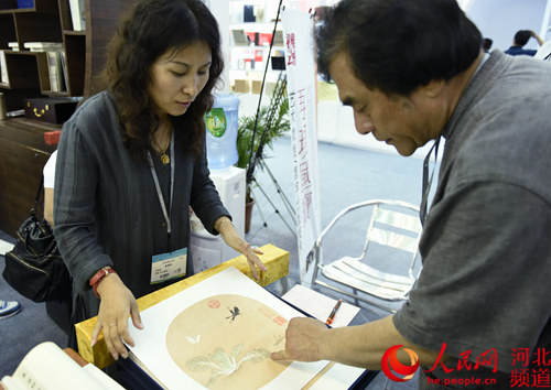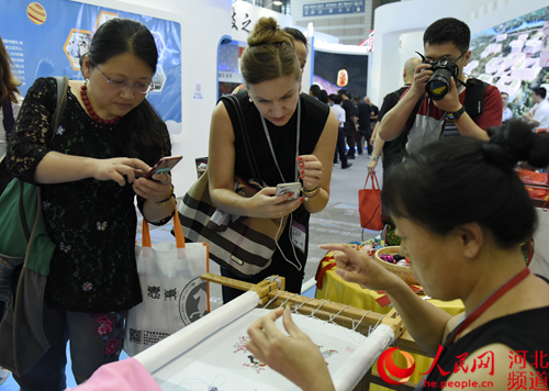 工作人員向游客介紹河北特色文化產(chǎn)品。王雅潔 攝