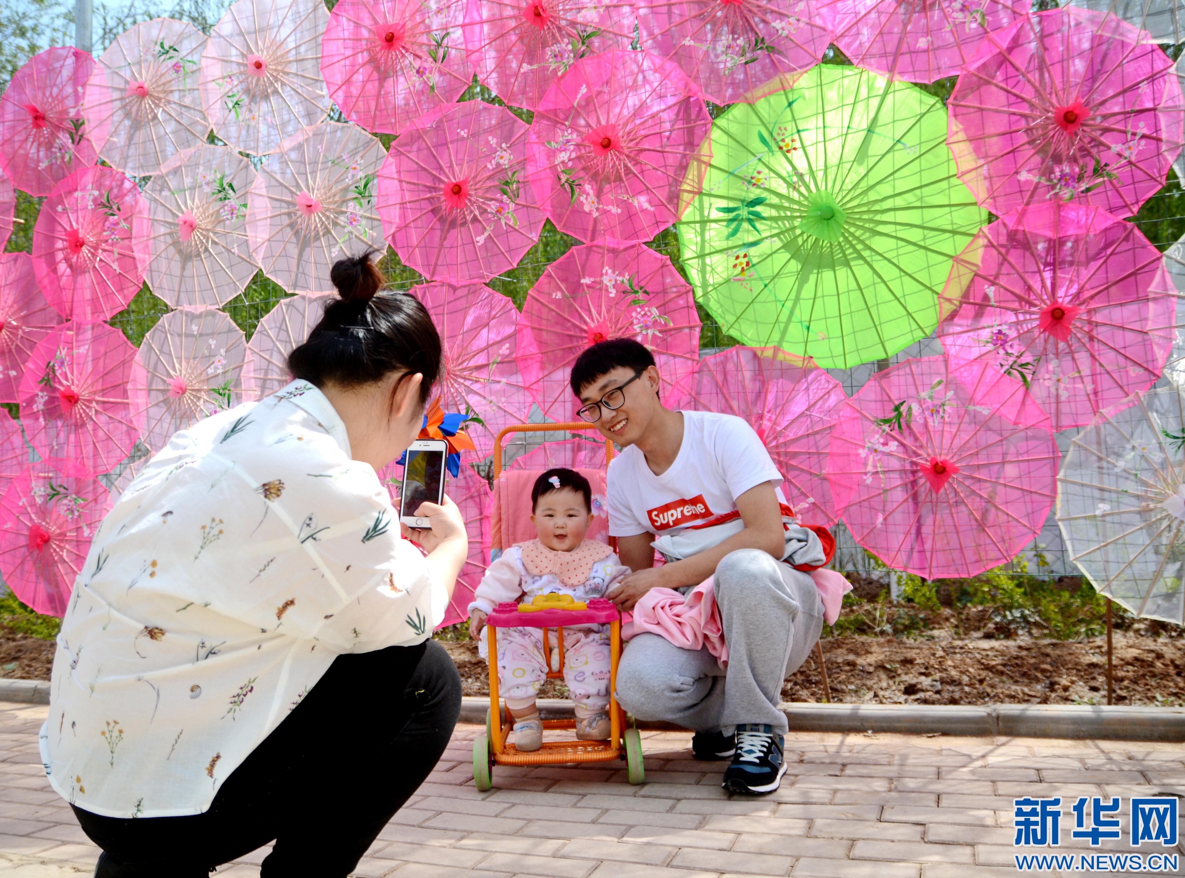 • 4月16日,游客在河北衡水花傘風車藝術展上拍照留念。新華社記者牟宇 攝   日前,河北衡水花傘風車藝術展在衡水市都市生態園舉辦,3000多把油紙花傘和數萬個風車形成一道靚麗景觀帶,吸引眾多游客前來觀賞游覽。