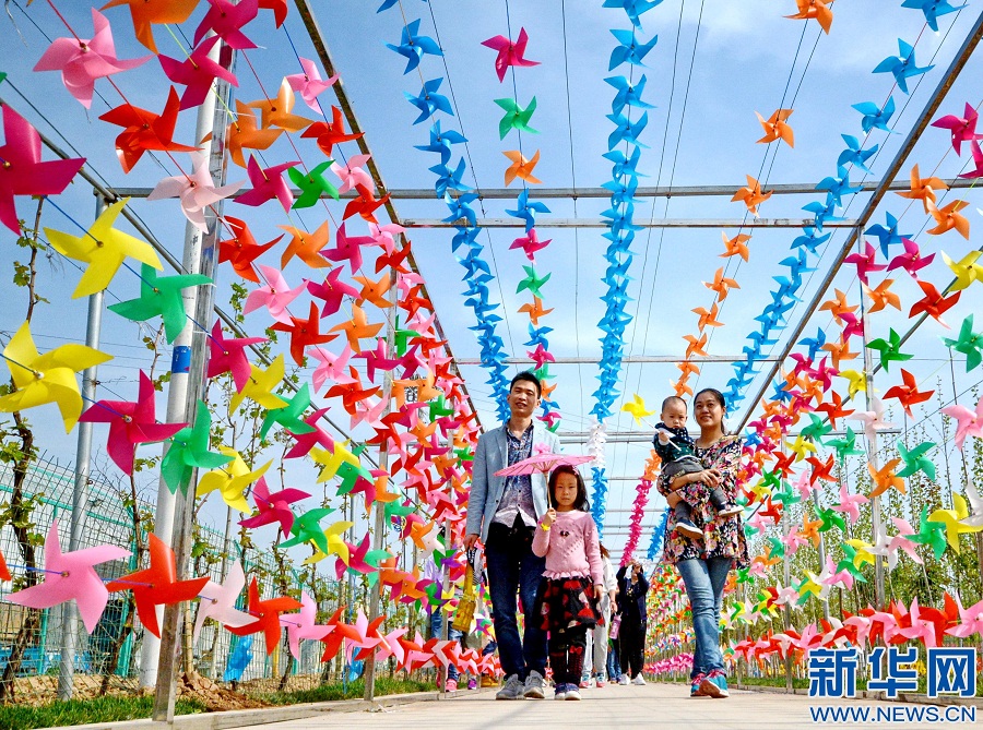 • 4月16日,游客在河北衡水花傘風車藝術展上參觀。新華社記者牟宇 攝