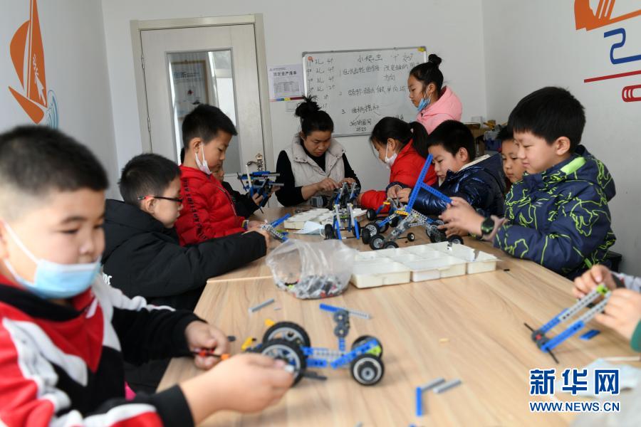 11月22日,學(xué)生們在青少年校外活動中心組裝機(jī)器人。