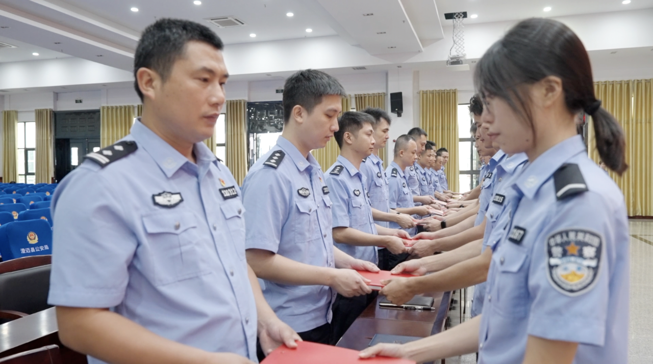 “我是中國人民警察,我宣誓……”儀式尾聲,黎凱領誓,全體民警起立,右手舉拳重溫入警誓詞。鏗鏘有力的誓言回蕩在報告廳內,進一步堅定了全體民警忠誠履職、奉獻自貿港建設的信念。