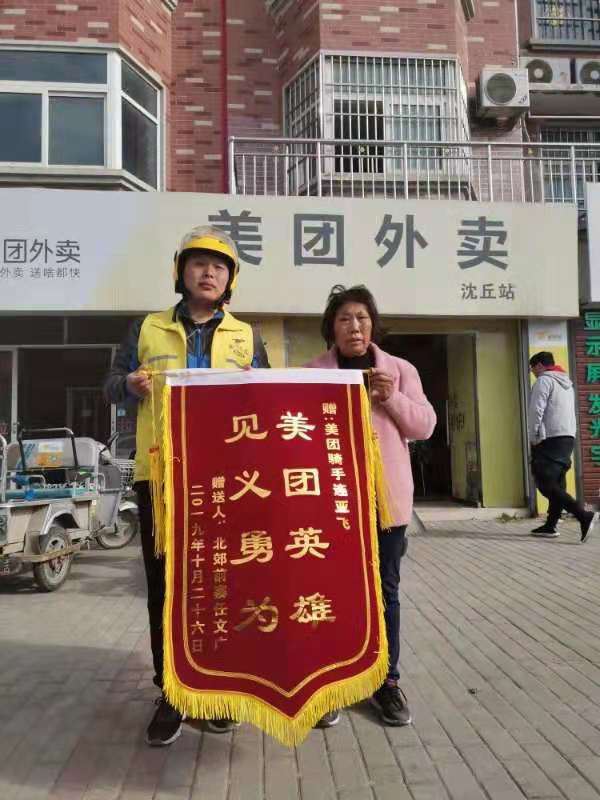 10月26日,河南省周口市沈丘縣美團(tuán)外賣配送中心站的90后騎手連亞飛,在送餐途中路過沈丘蔡河橋西邊時(shí),發(fā)現(xiàn)一騎三輪車婦女突然失控,大人小孩連人帶車一起掉到河里,他奮不顧身跳入河中救起2人。救人的事跡傳開后,連亞飛成了方圓數(shù)里的“紅人”,10月28日,共青團(tuán)沈丘縣委授予他“見義勇為好青年”榮譽(yù)稱號,美團(tuán)外賣平臺(tái)授予他“模范騎手”榮譽(yù)稱號和800元現(xiàn)金獎(jiǎng)勵(lì)。