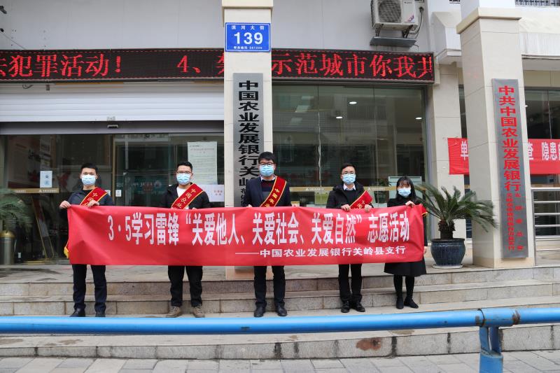 今年3月5日是第58個“學雷鋒紀念日”。農發行關嶺縣支行在大力做好疫情防控的同時,根據自身實際,于3月5日組織員工開展3.5學習雷鋒“關愛他人、關愛社會、關愛自然”志愿活動。