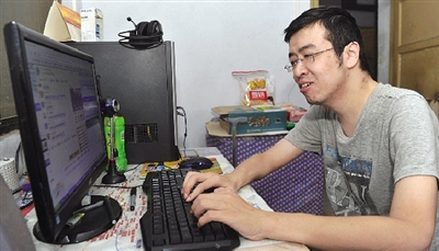 郭明亮每天大部分時間都在電腦前,為“愛不會停止腳步”等QQ群的病友們排憂解難