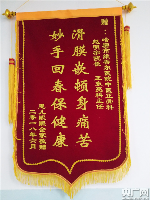 患者為趙明宇贈(zèng)送錦旗表示感謝 央廣網(wǎng)記者汪寧攝
