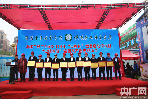 在“安康杯”競賽啟動(dòng)儀式上,公司安全總監(jiān)張國強(qiáng)首先對(duì)2017年“安康杯”競賽活動(dòng)情況和2018年工作計(jì)劃進(jìn)行了總結(jié),并指出安全是企業(yè)發(fā)展的基本保障和前提,健康是職工工作的基本需求和權(quán)益。公司正式啟動(dòng)“行為安全之星”活動(dòng)并播放了《中國建筑“行為安全之星”活動(dòng)宣傳片》及公司安康建設(shè)工作視頻。活動(dòng)還分別為河南省和局2017年度安康杯競賽先進(jìn)集體和個(gè)人、公司2017年度優(yōu)秀青年安全生產(chǎn)示范崗、2018年青年安全生產(chǎn)示范崗創(chuàng)建集體進(jìn)行了頒獎(jiǎng)和授牌。此外,西北分公司組織了安全文化建設(shè)表演,并制作播放《囑托》視頻,敲響安全警鐘,最后全體人員進(jìn)行了安全宣誓。