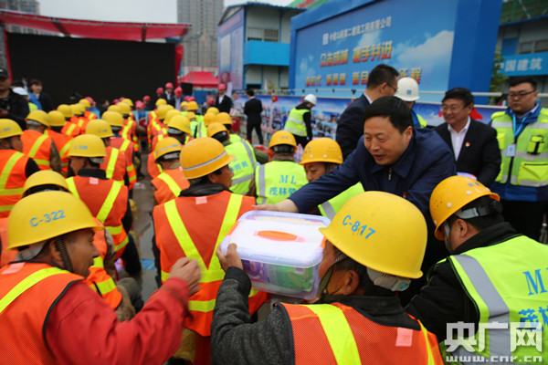 與會(huì)領(lǐng)導(dǎo)還集體為工友送去安康大禮包并對(duì)現(xiàn)場進(jìn)行了安全巡查。