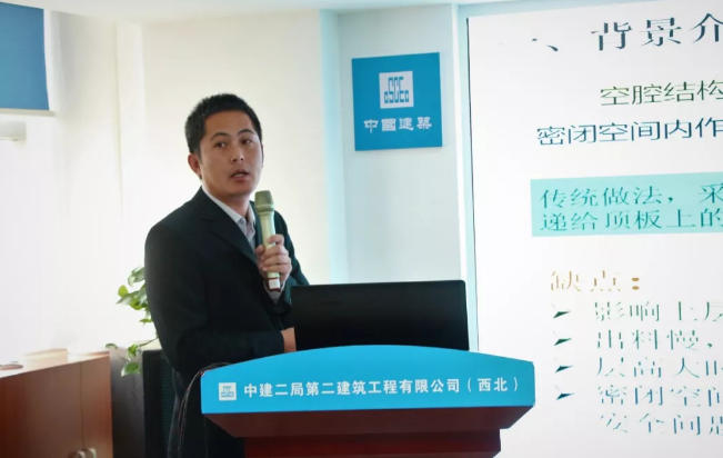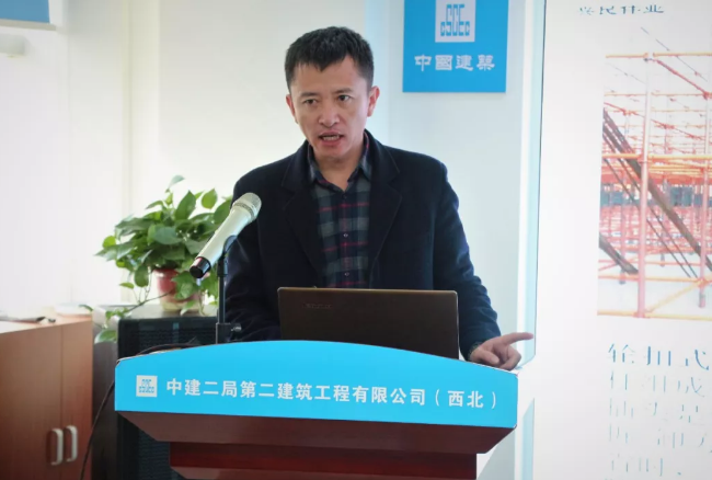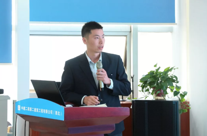 陜西能源遠大建筑工業(yè)有限公司副總經(jīng)理孫浩康在會上進行交流