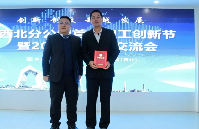 分公司經(jīng)理蘇錦龍為首屆職工創(chuàng)新節(jié)創(chuàng)新成果一等獎獲得者頒獎