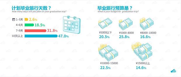 不同于80后,95后學(xué)生群體更注重旅行體驗(yàn),在旅行開銷上面花費(fèi)更多預(yù)算。調(diào)查結(jié)果顯示,超過78% 的學(xué)生將畢業(yè)旅行規(guī)劃為7-10天的長線旅行,愿意花更多的時(shí)間去體驗(yàn)旅行,而不是走馬觀花看景點(diǎn)。其中37.1%的同學(xué)將畢業(yè)旅行的預(yù)算設(shè)為10000元以上;美食、購物、藝術(shù)展等深度體驗(yàn)項(xiàng)目成為95后旅行消費(fèi)中的重點(diǎn)。