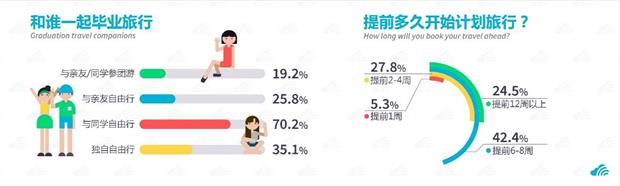 在旅行行為方面,95后學(xué)生群體的出行方式并非無節(jié)制消費(fèi),反而更注重出行的性價(jià)比,善于提前規(guī)劃行程,提前做好旅行攻略。根據(jù)調(diào)查顯示,70.2%的學(xué)生希望畢業(yè)旅行能與同學(xué)一起自由行,但仍有35%的同學(xué)選擇獨(dú)自旅行,向人生另外一個階段邁進(jìn)。在預(yù)訂機(jī)票方面,有24.5%的大學(xué)生提前12周就開始“緊盯”機(jī)票價(jià)格走勢,適時(shí)購買低價(jià)機(jī)票。而根據(jù)天巡此前針對全球出境游客的預(yù)定周期調(diào)查發(fā)現(xiàn),中國普通游客預(yù)定周期僅僅提前40天。而95后出境旅行預(yù)定提前了8-12周,說明了95后大學(xué)生旅行出行方式越來越成熟,出境度假概念越來深化。