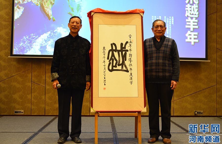 中國著名文字學家白雙法先生與原河南省文聯副主席,中國著名書法家王鴻玉先生共同發布2015羊年指導性年度漢字“越”。