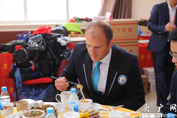 在挑戰活動結束后,John Garland先生也和在場的長壽老人們一起,饒有興致地一起分享了這份特殊的長壽面。