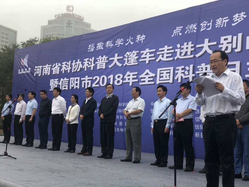 活動現場,河南省科協黨組書記曹奎、副巡視員楊金河、信陽市市委副書記劉國棟等領導為開展“河南省科協科普大篷車走進大別山走進貧困縣”活動的新縣、固始縣、光山縣、潢川縣、淮濱縣等五縣進行授旗;河南省青少年科技教育協會和香港普明善基金會共同出資捐贈新縣5名品學兼優的貧困學生;河南科技報社將為中小學校贈送10萬份《河南科技報》。