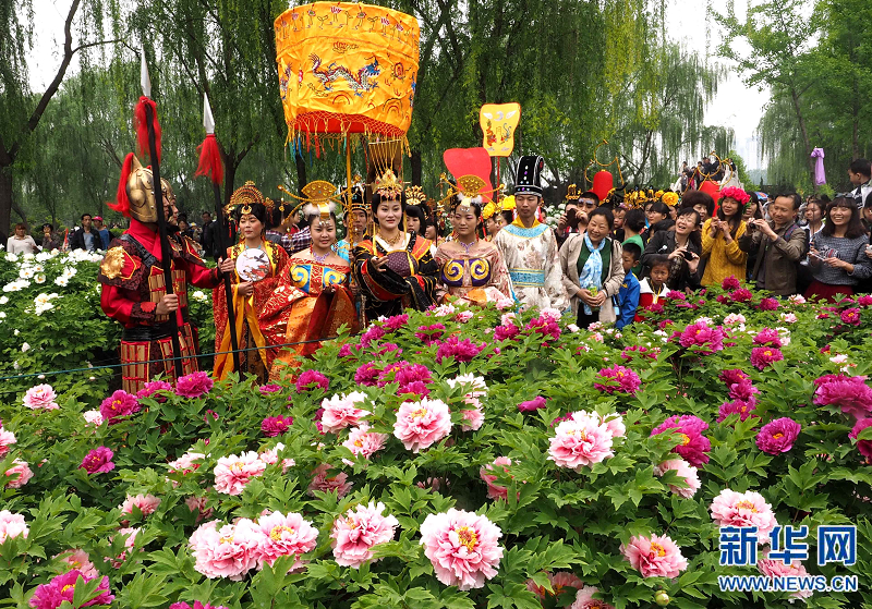 央廣網河南分網消息 據新華網河南頻道報道:當日,是清明小長假的第二天。河南省洛陽市隋唐城遺址植物園的牡丹園內,舉行了一場“武皇賞花”大型藝術表演,為游客模擬再現了當年武則天清明踏青、游園賞花的盛大場景。市民和游客們跟隨“武皇”在園中游玩,觀賞國色天香,品味歷史文化。