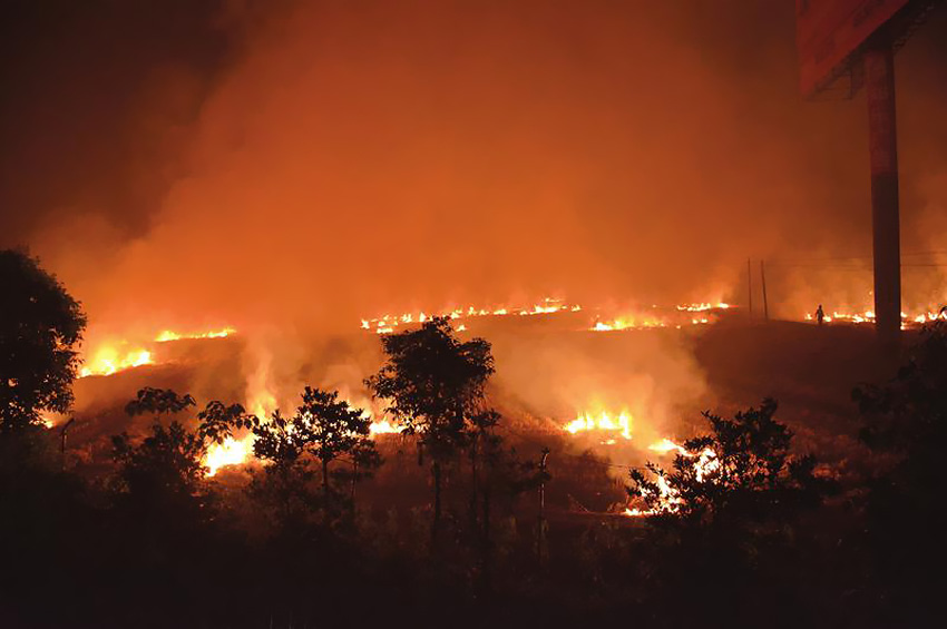 5月7日,記者在眉山、樂山等地發(fā)現(xiàn)了多處正在焚燒的秸稈堆……