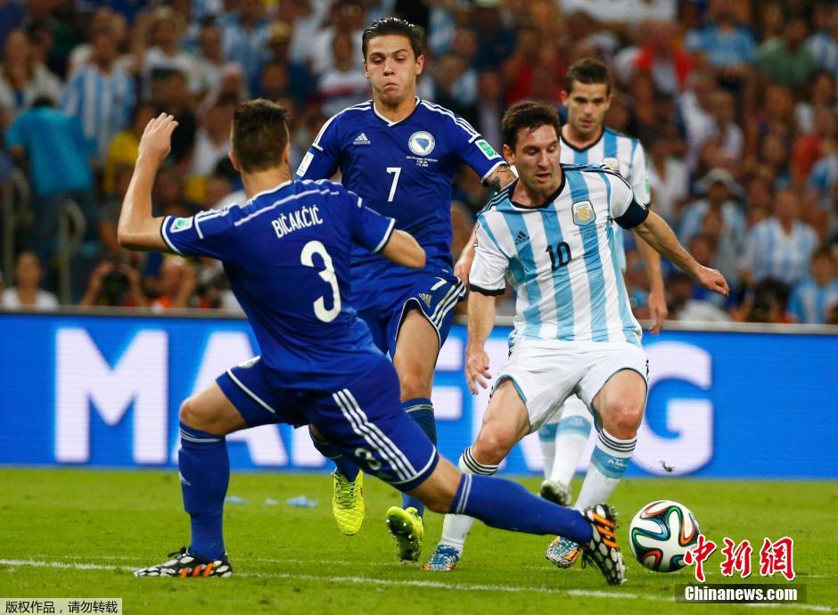 央廣網河南分網消息 據中新網報道:北京時間6月16日早晨6點,2014年巴西世界杯F組一場焦點戰在馬拉卡納球場打響。阿根廷國家隊對陣波黑國家隊。比賽開場僅130秒,梅西左邊路開出任意球,羅霍禁區內頭球一蹭,波黑邊后衛科拉西納茨門前不慎自擺烏龍,阿根廷1-0波黑。這粒進球成為本屆世界杯開賽以來最快的進球,也是世界杯歷史上最快的烏龍球。第65分鐘,梅西沿右路一路盤帶至禁區前沿,晃開角度后突施冷箭,皮球在擊中立柱后彈入網窩!這是梅西8年后再次在世界杯進球,上一次梅西在世界杯進球是06年阿根廷6-1大勝塞黑的比賽。第85分鐘,伊比舍維奇禁區內接隊友傳球后打門,皮球越過門將后緩緩滾入球網,波黑隊扳回一城。最終阿根廷2-1戰勝對手。