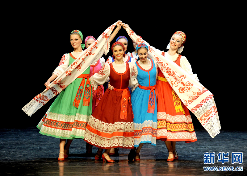 央廣網河南分網消息 據新華網河南頻道報道:當日,俄羅斯國家模范小白樺舞蹈藝術團歌舞晚會在河南藝術中心大劇院上演。(新華社記者 李安 攝)