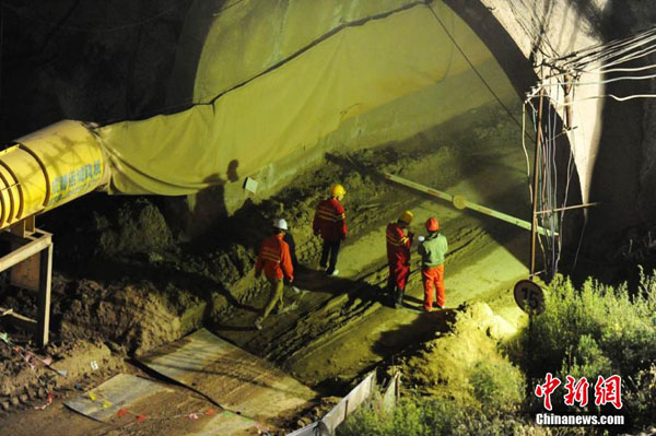 11月4日15時許,正在施工的蘭(蘭州)渝(重慶)鐵路蘭州桃樹坪隧道2號斜井發(fā)生塌方,被確認有9人被埋。傍晚時分,現場陸續(xù)有小型挖掘機和載有安全帽、繩索等救援物品的車輛靠近事故隧道口。記者從事故現場了解到,此工程由中鐵二十一局施工,目前消防等多部門正在進行緊張的救援。楊艷敏 攝