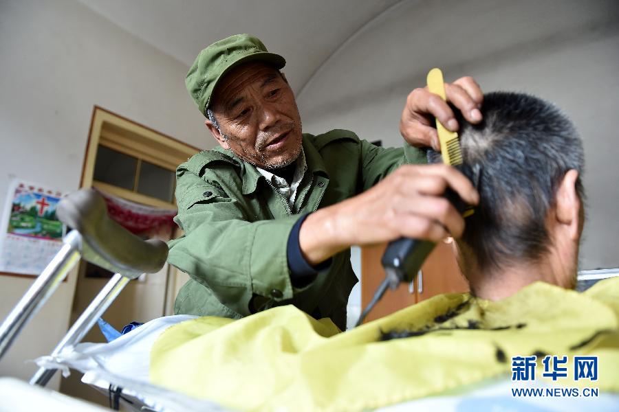 央廣網(wǎng)河南分網(wǎng)消息 據(jù)新華網(wǎng)報(bào)道:11月3日,李來(lái)生在為一位村民理發(fā)。今年63歲的李來(lái)生是山西省孝義市東莊村人,自1975年退伍后,每天堅(jiān)持為村里的孤寡老人、行動(dòng)不便的村民免費(fèi)理發(fā),雖然1980年他因病失去一條腿,但30多年來(lái),李來(lái)生的義務(wù)理發(fā)從未間斷。 20世紀(jì)70年代,李來(lái)生在部隊(duì)當(dāng)兵,見(jiàn)老兵去敬老院為老人義務(wù)理發(fā),便萌生學(xué)理發(fā)念頭。一位老兵對(duì)李來(lái)生說(shuō),教你可以,但你學(xué)會(huì)了還要堅(jiān)持為老人義務(wù)理發(fā)。李來(lái)生當(dāng)時(shí)就做了一個(gè)承諾:一定堅(jiān)持為有需要的人義務(wù)理發(fā)。此后的日子里,李來(lái)生用行動(dòng)恪守著自己的承諾!班l(xiāng)里鄉(xiāng)親的,上門(mén)為他們理發(fā),也能和他們聊聊天! 李來(lái)生說(shuō):“只要我還能走,我就會(huì)堅(jiān)持做下去。” 日前,李來(lái)生被山西省孝義市評(píng)為“孝義好人”。 新華社記者 詹彥攝