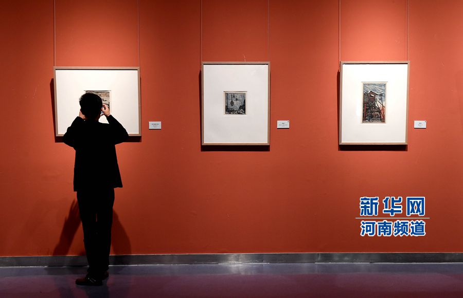 10月22日,參觀者在“河南省美術館館藏劉鐵華版畫展”上參觀展品。