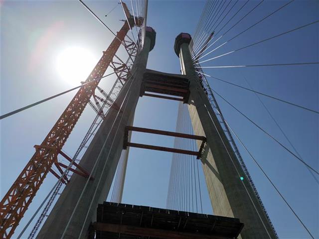 湖北日報訊(記者左晨、通訊員周紅梅、黃麗霞、李祥華)江風(fēng)拂面,百舸爭流。3月25日11時18分,隨著最后一方混凝土澆筑完畢,由武九客專湖北公司建設(shè)、中鐵大橋院設(shè)計、中鐵大橋局施工的安九鐵路鳊魚洲長江大橋主橋北主塔封頂,標(biāo)志著我國首座交叉索斜拉橋主橋兩個主塔全部封頂,大橋建設(shè)邁入上部結(jié)構(gòu)施工階段。
