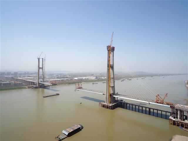 據(jù)介紹,安九鐵路鳊魚洲長江大橋2017年10月開工建設(shè),預(yù)計年內(nèi)大橋主體工程完工。大橋北側(cè)位于湖北黃梅縣,南側(cè)位于江西九江市。大橋為四線鐵路大橋,其中兩線為高鐵線,時速350公里;預(yù)留兩線為客貨線,時速200公里。鳊魚洲長江大橋為主跨672米、全長1320米的雙塔雙索面交叉索斜拉橋,是國內(nèi)首座交叉索斜拉橋。