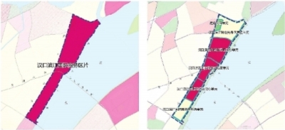 漢口濱江國際商務區片及功能單元布局(漢口濱江國際商務區片包含6個功能單元)。
