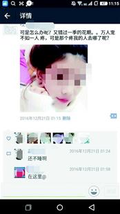 楚天都市報訊 圖為:網戀“女友”朋友圈截屏