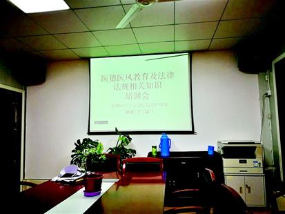 昨日下午,記者來到新洲區紅十字會醫院時,醫院正在組織護理部人員培訓醫德醫風和相關法律法規知識。