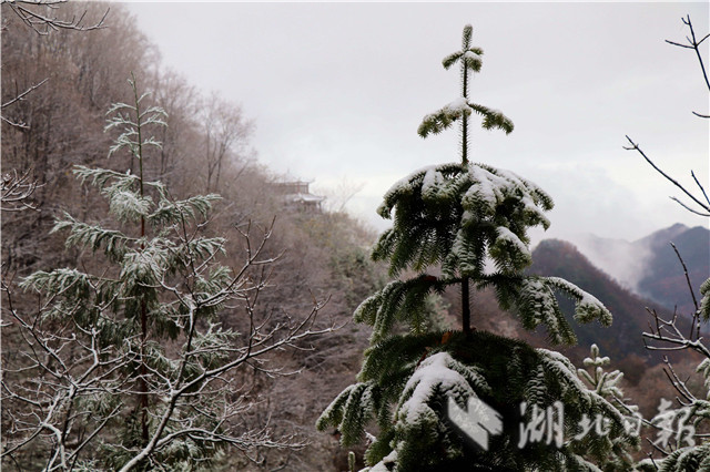 11月6日,在保康縣馬橋鎮堯治河村梨花山拍攝的雪景。當日,受冷空氣影響,保康縣馬橋鎮、龍坪鎮等海拔1200米以上的高山地區降下今年入秋以來第一場雪。(視界網楊韜張強攝)