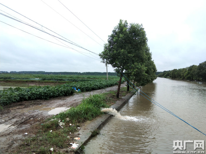 圖二:監利市遭遇持續強降雨,當地組織力量加緊為水稻田排漬疏澇。央廣網發 記者左艾甫 攝