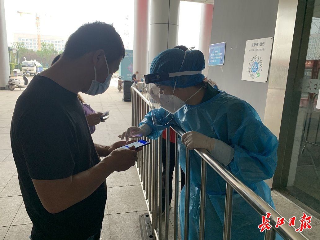 記者探訪多個新冠疫苗接種點發現,居民全程自覺佩戴口罩,各接種點嚴格執行掃碼測溫,在武漢市金銀潭醫院武漢客廳新冠疫苗臨時接種點,大廳門口排著長隊,指示牌上標明:“本接種點按防控要求入內,一人一碼。”工作人員要求每人都掃碼測溫,即使健康碼和行程卡都無異常,工作人員也要詢問近期是否去過中高風險地區,審核完成后接種人員方可進入一樓等候區。
