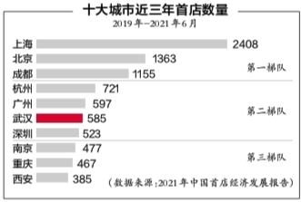 《報告》顯示,自2019年1月到2021年6月,武漢引進和培育的首店達585家,位列全國第六,穩(wěn)居首店經(jīng)濟“第二梯隊”。特別是今年上半年,武漢首店經(jīng)濟發(fā)展迅猛,新開首店195家,排名全國第五,趕超勢頭正勁。 隨著資本市場入局新消費領(lǐng)域,線下拓店速度正在加快。如今,上海、北京、深圳、武漢、成都等是“新消費”品牌制造地和老字號煥新培育地。 作為城市消費能級及商業(yè)活力的象征,城市間的首店爭奪戰(zhàn)將日趨激烈。