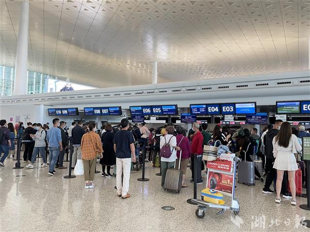 據了解,今年從武漢出發前往的主要熱門城市為北京、上海、廣州、深圳、成都、海口、三亞。國際方面,武漢機場執行24架次國際地區航班,主要為新加坡、首爾、香港和澳門。單日客流最高峰為9月30日,航班量達到587架次,旅客吞吐量達到7.5萬人次。