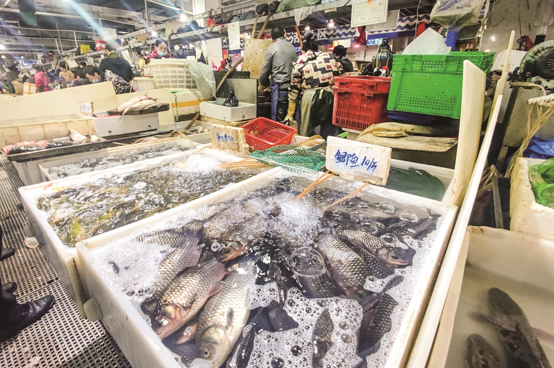 10月24日一早,漢口黃孝河路的一家生鮮賣場里,剛剛到貨的淡水魚在水產檔口的大盆子里暢游,面前圍了不少正在挑選的市民。