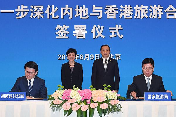 香港特區政府與國家旅游局9日在京簽署《關于進一步深化內地與香港旅游合作協議》,進一步加強雙方在旅游發展領域的交流合作。
