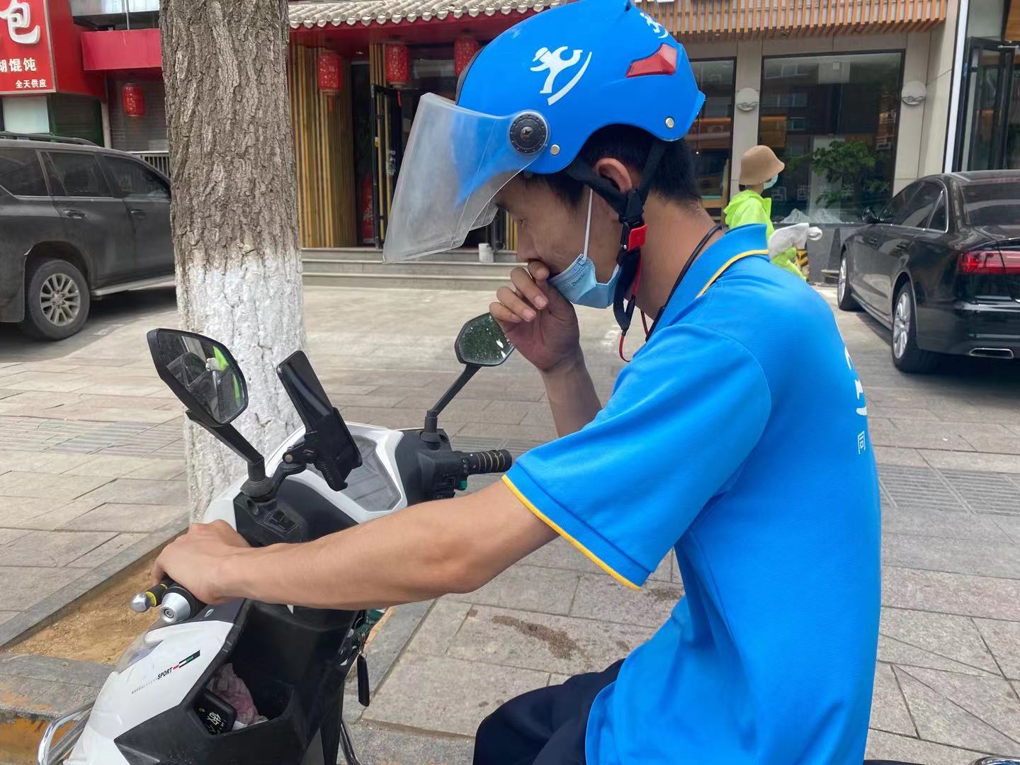對孫德權來說,騎手工作最辛苦的地方是冬夏兩季的天氣,夏天頂著烈日,冬天迎著寒風,北京的6月,取貨送貨的一小會兒,電動車座已經曬得燙屁股,而這還不是最熱的時候。