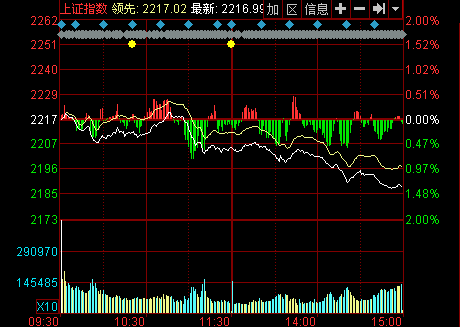 收盤:權(quán)重拖累 滬指重挫1.34%失守2200點