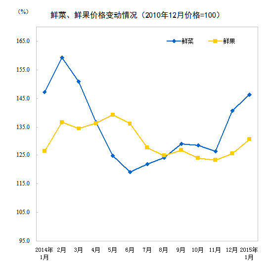2015年1月份CPI同比上漲0.8% 創(chuàng)五年新低