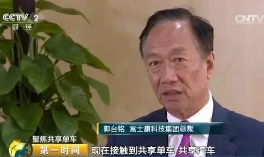 富士康科技集團總裁 郭臺銘: 就是現在接觸到共享單車、共享汽車,進入到這些很多的網絡的,等于說硬件和軟件要結合的時代,所以說富士康做到這個就蠻重要的。我們在制造的領域,在設計開發的領域,可以把這家公司很快地讓它有一個市場占有率。