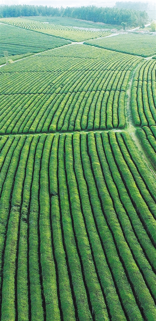 圖② 江西省南昌縣鳳凰溝景區的“千畝茶海”。坐擁整個鄱陽湖流域、正處工業化發展中期的江西,正為長江經濟帶生態文明建設尋找答案。 新華社記者 萬 象攝