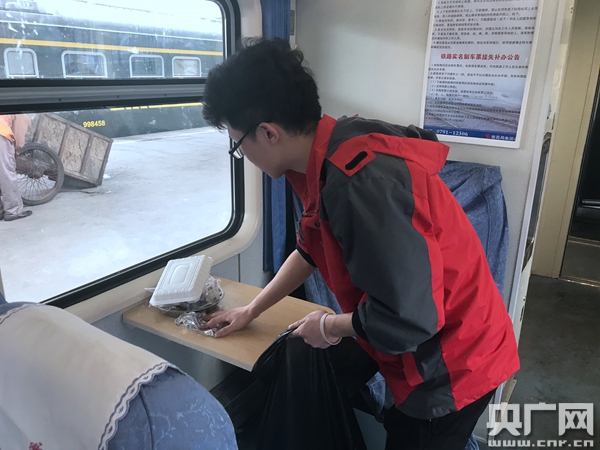 雖然只是臨時(shí)擔(dān)任列車員,但是王銘的工作與正式的列車員并沒有什么不同。“就我們列車員而言,平時(shí)主要做的日常工作就是車廂的衛(wèi)生清潔工作,還有就是對于旅客的突發(fā)情況,我們也要做出積極的回應(yīng)。”