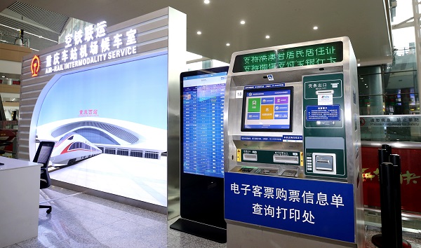 袁新宇說:“到達江北機場的旅客想換乘重慶西站動車,可在T3航站樓出站口的機場火車站候車室,享受火車票自助售取票、列車班次查詢、VIP進站、專屬休息室等服務。對應地,在重慶西站出站口的機場候機樓,也可以享受更換登機牌、辦理行李托運等服務!