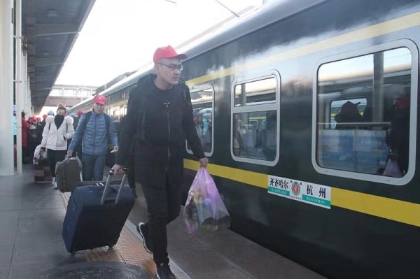 務工人員乘車(中鐵哈爾濱局供圖)
