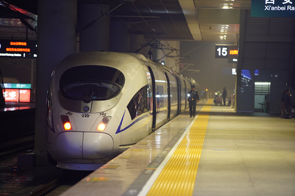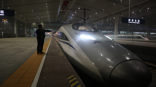 凌晨G4856次列車即將從西安北站出發(尤艇 攝 中鐵西安局供圖)