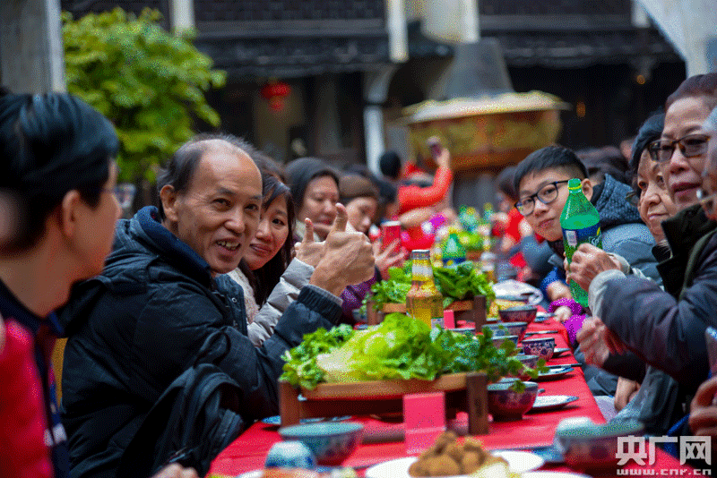 15日,一場徽州婚俗之旅,真實再現了古徽州傳統婚俗。其中的迎親儀仗隊、拜天地、拜高堂、掀蓋頭、撒粿籽等環節,都取材于真實的古徽州婚嫁迎娶風俗。長街宴席,把天街占得滿滿當當,五湖四海的游客歡聚一堂,把酒言歡,感受地道的農家味道。22日,十多個石臼在眾屋廣場一字排開,數百人一起熱火朝天的打麻糍,場面很是壯觀。還有各種花樣民俗,讓你新奇不已,不由得想體驗一番。