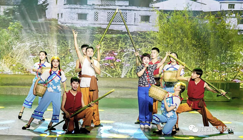 客家山歌——形式多樣。銅鼓民歌有民間小調、號子、山歌、燈歌、風俗歌等數種,其中以“山歌”、“小調”為主,表現的是客家人的社會生活、田間勞作、上山砍柴、談情說愛等情景。在音樂曲風上,保留著較為純正的客家語言本色。主要代表曲:上山有茶農的《打鼓鏟山歌》、下河有筏工的《灘歌》、婦女在家紡線有《車車歌》、孩童游戲有《螃蟹歌》、傳授知識、傾吐愛慕、打趣取樂有多種格調的《盤歌》。人民音樂出版社出版的《中國音樂詞曲》,選取銅鼓急板山歌《賣余糧》作為“山歌”的唯一例曲。