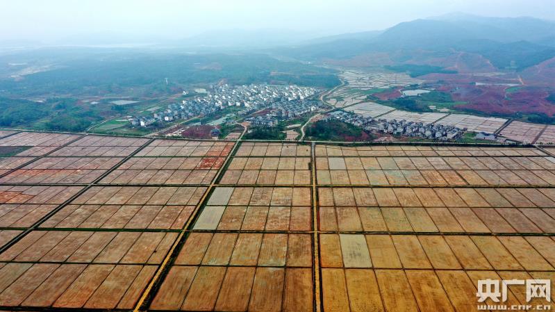 3月30日,江西省吉安市吉水縣水田鄉(xiāng)峽江水利樞紐工程抬田區(qū),翻耕好的農(nóng)田整齊排列等待插秧,橫平豎直氣勢(shì)壯觀